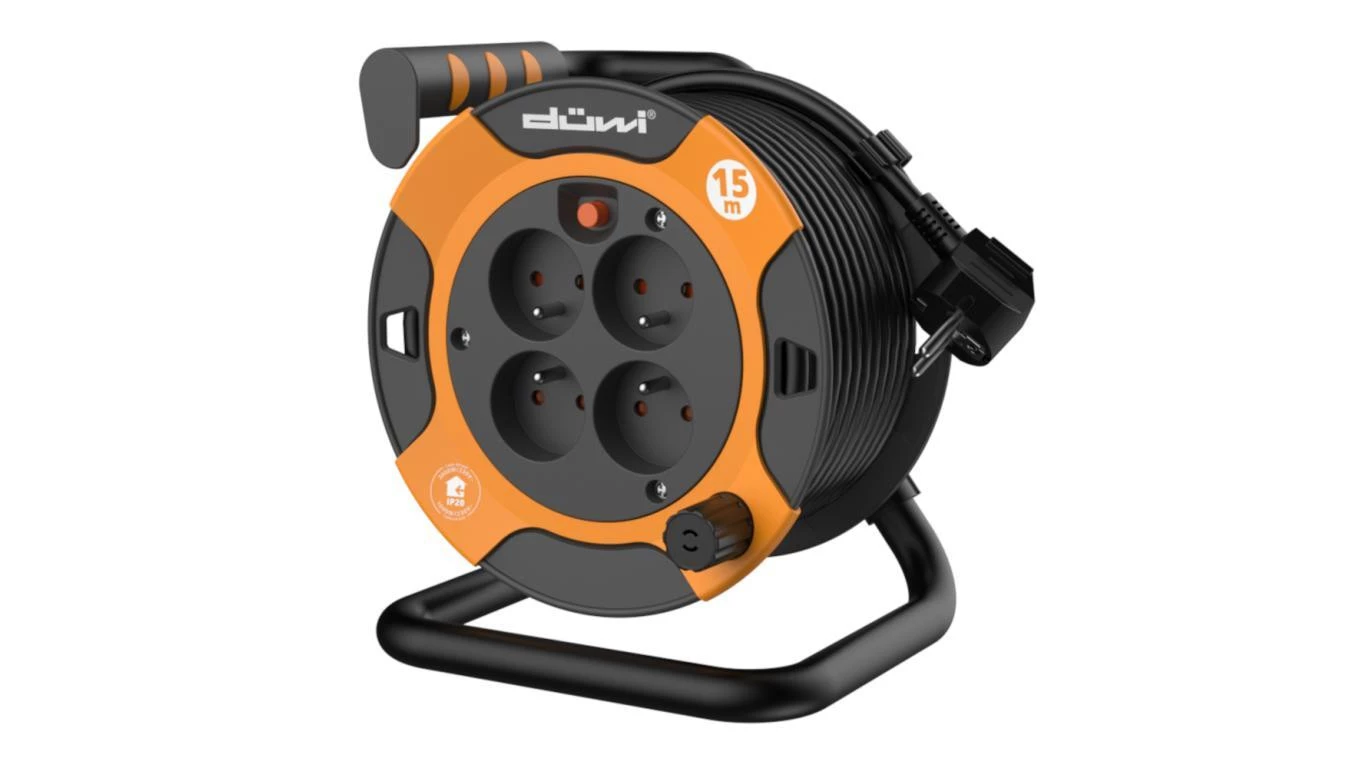 Przedłużacz bębnowy 4-gniazdowy H05VV-F 3G1.0, 15m pomarańczowo-czarny / 24622