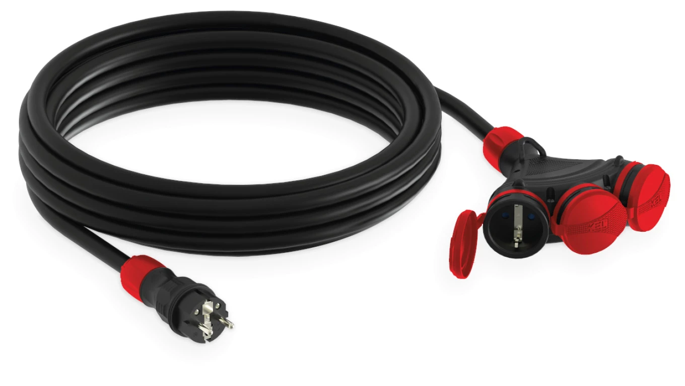 Przedłużacz budowlany 3-gniazda z/u 5m /H05RR-F 3x2,5/ IP54 czarny/czerwony W-01170