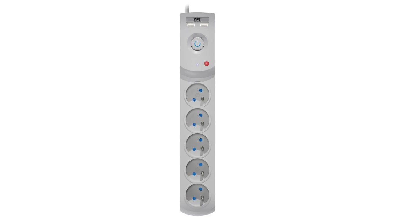 Przedłużacz przeciwprzepięciowy professional 5 gniazd 2xUSB 1,5m 10A 230V 2300W szary W-100040