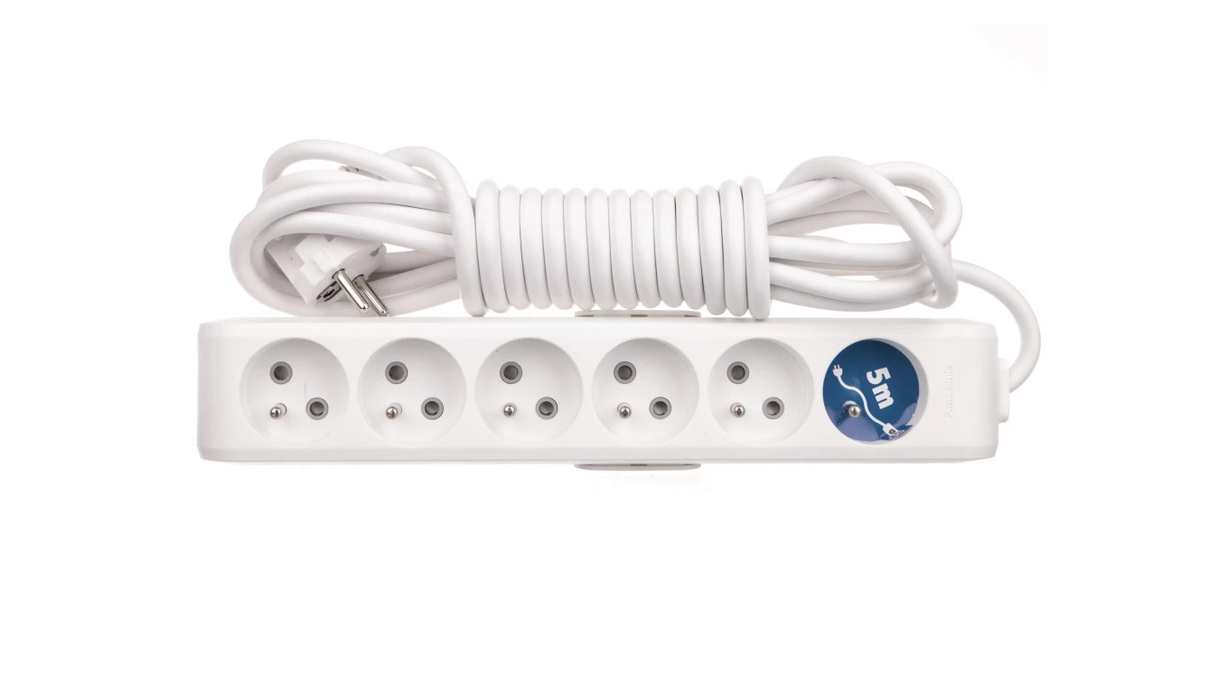 Przedłużacz Przenośny 6-Krotny Z Uziemieniem I Przesłonami Styków 5m, Kolor Biały / Wltb0665-2wh