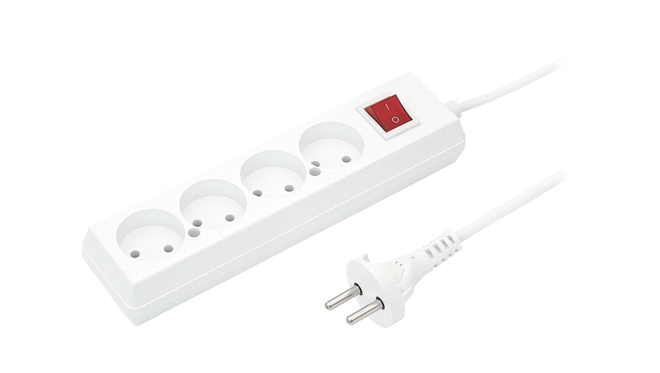 Przedłużacz z wyłącznikiem 4-gniazda b/u 10A 1,5m /OMY 2x1/ biały PS-460WS T-105910