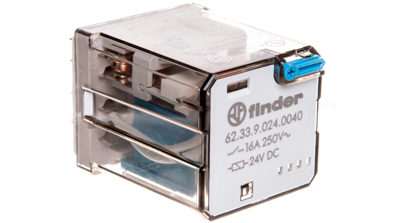 Przekaźnik 3P 16A 24V DC do gniazda lub Faston 187, przycisk testujący, mechaniczny wskaźnik zadziałania 62.33.9.024.0040