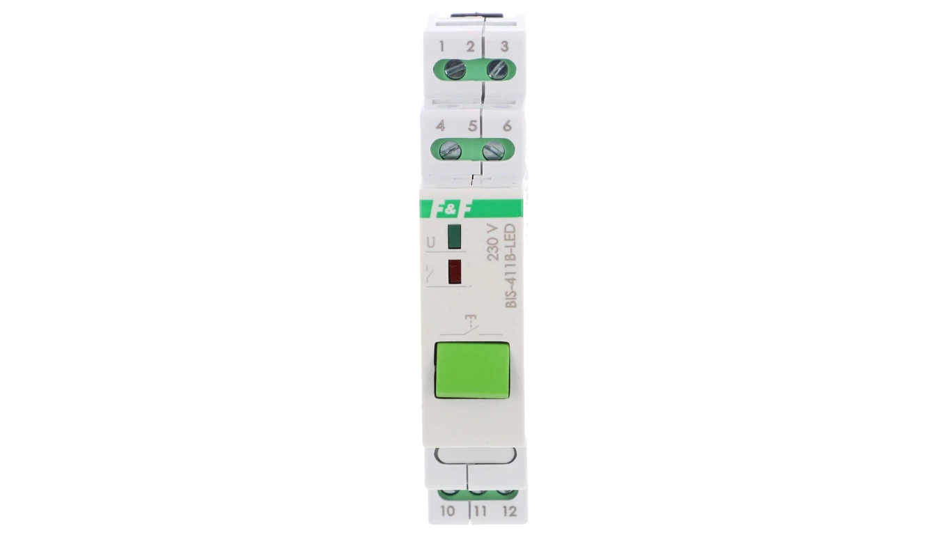 Przekaźnik bistabilny z przyciskiem do sterowania ręcznego na szynę DIN z przekaźnikiem inrush 160A/20ms BIS-411B-LED