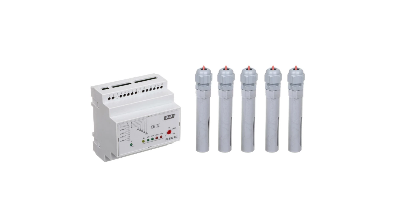Przekaźnik kontroli poziomu cieczy 16/8A 2x2P 1-100kOhm z regulacją czułości PZ-832RC