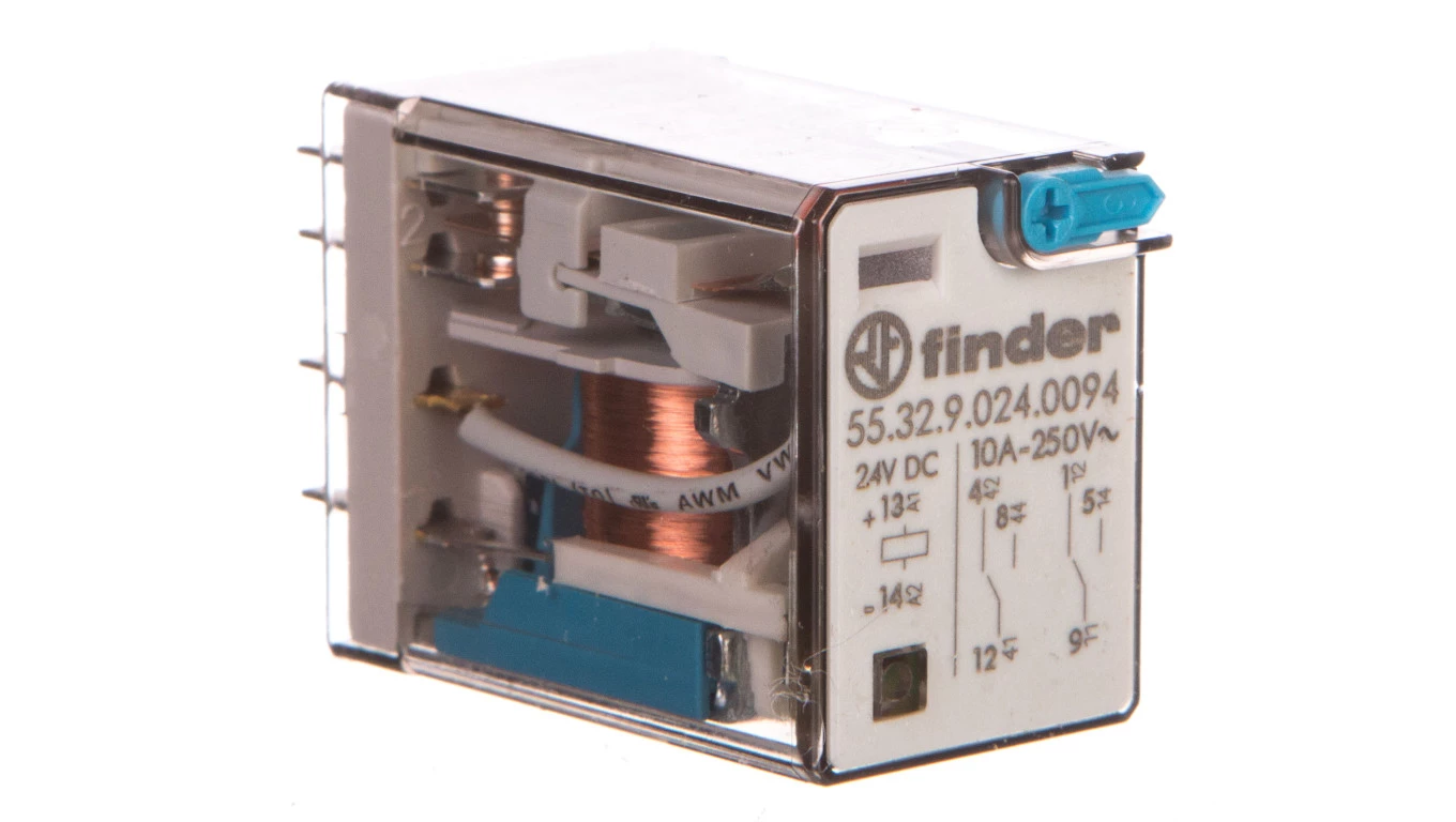 Przekaźnik przemysłowy 2P 10A 24V DC przycisk testujący LED mechaniczny wskaźnik zadziałania 55.32.9.024.0094