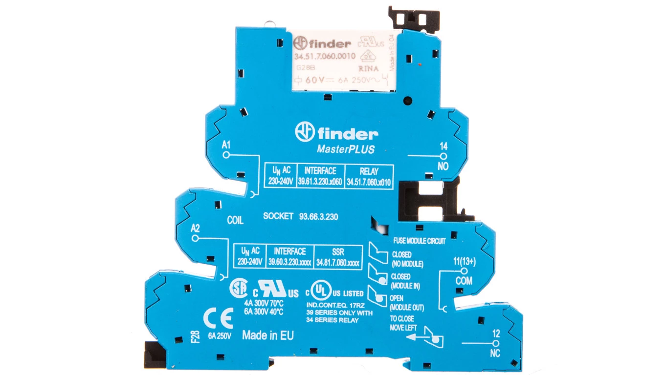 Przekaźnikowy moduł sprzęgający 6,2mm MasterPLUS 1P 6A 220-240V AC styki AgNi zaciski sprężynowe 39.61.3.230.0060