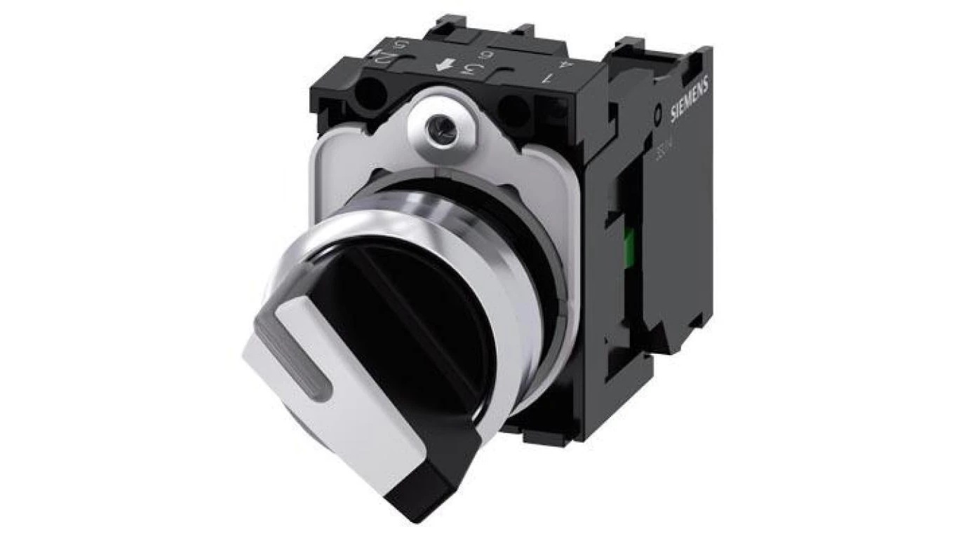 Przełącznik krótkie pióro 2-poz bistabilny czarny/biały styk 1Z+1R przył śrubowe 22mm metal SIRIUS ACT 3SU1150-2BF60-1MA0