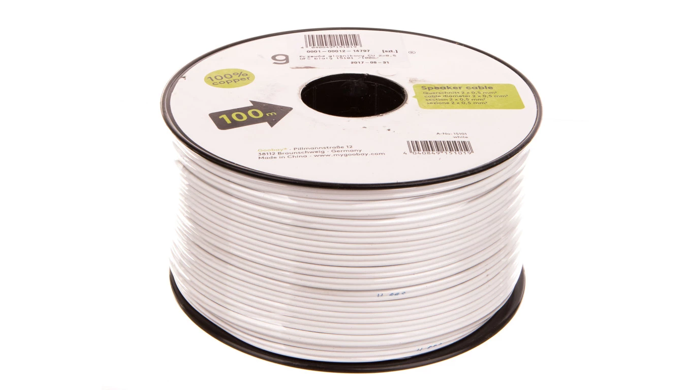 Przewód głośnikowy CU 2x0,5 OFC biały 15101 /100m/