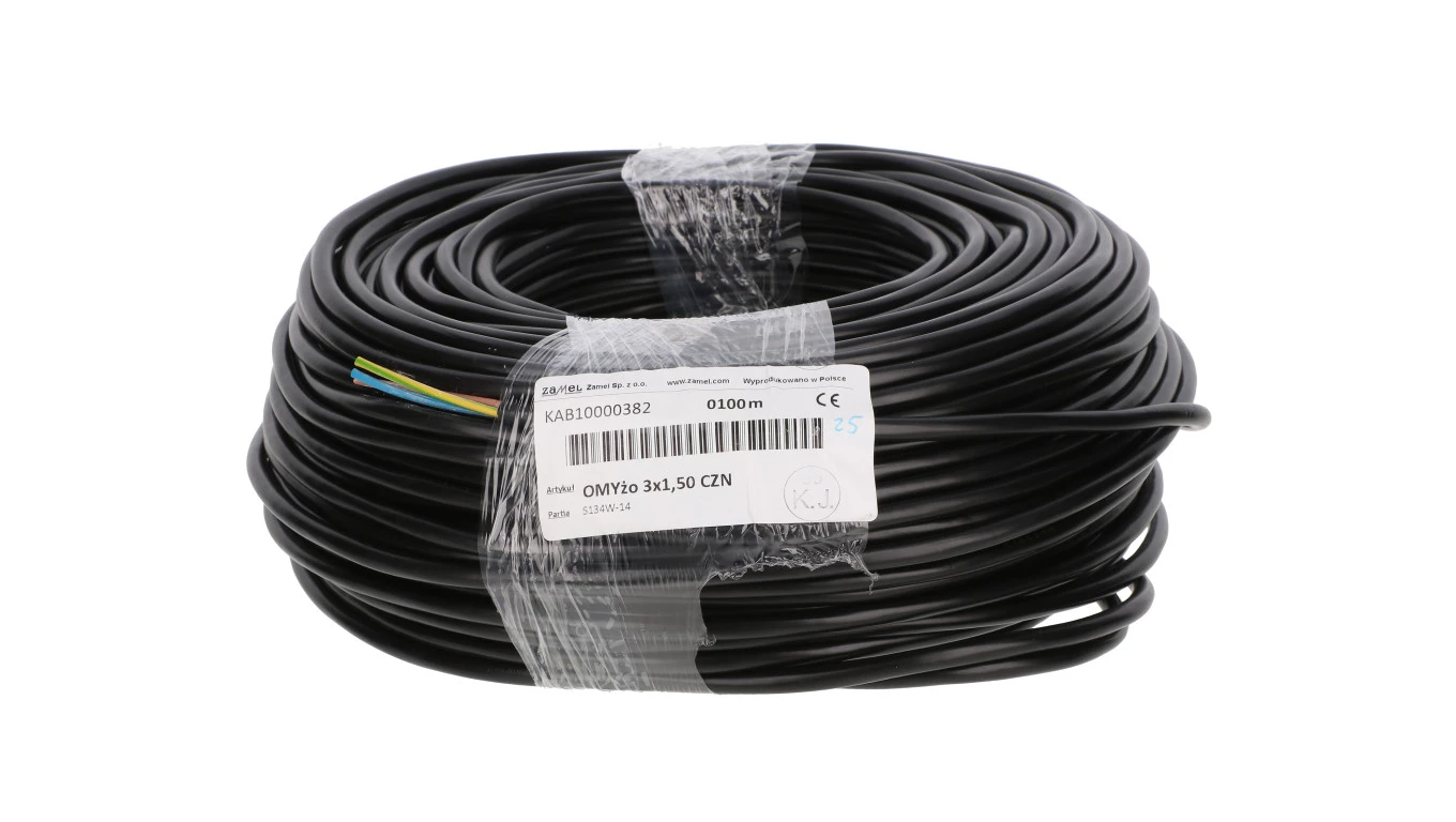 Przewód mieszkaniowy H03VV-F (OMY) 3x1,5 żo czarny 300/300V /100m/