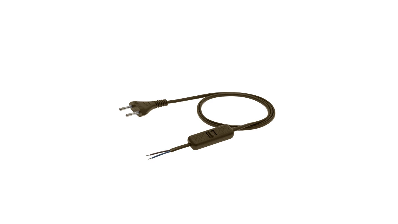 Przewód z wyłącznikiem z płaską wtyczką b/u H03VVH2-F 2x0,5 złoty S-13W-0,5-2-15 /2m/