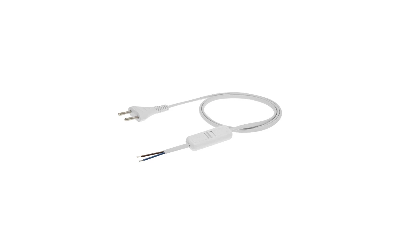 Przewód z wyłącznikiem z płaską wtyczką b/u H03VVH2-F 2x0,75 biały S-13W-0,75-2-1 /2m/