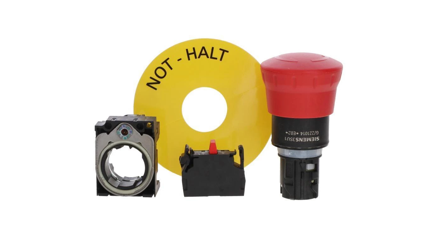 Przycisk bezpieczeństwa kpl 22mm tworzywo czerwony 1R przez obrót etykieta Not Halt IP69k SIRIUS ACT 3SU1100-1HB20-1CH0