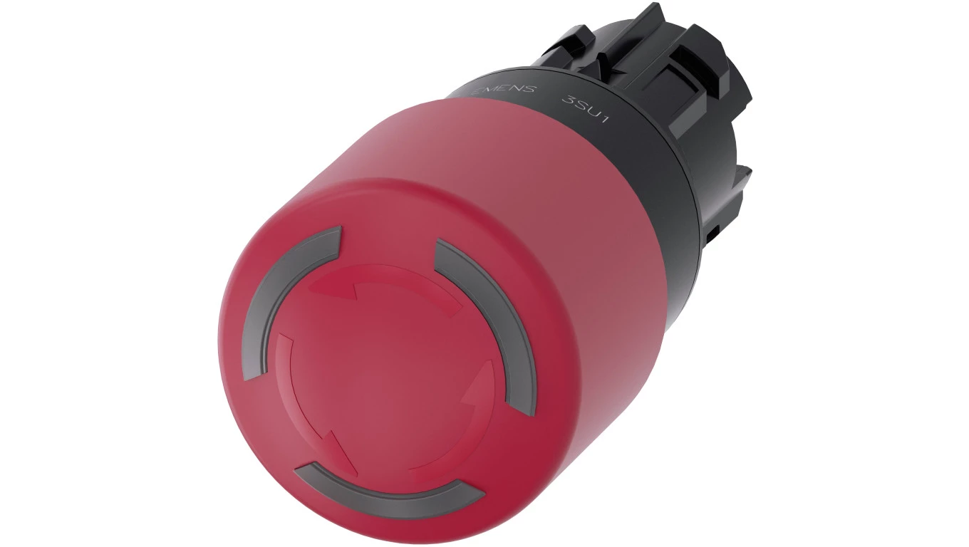 Przycisk bezpieczeństwa podświetlany 22mm tworzywo czerwony 30mm odbl. przez obrót IP69k SIRIUS ACT 3SU1001-1GB20-0AA0