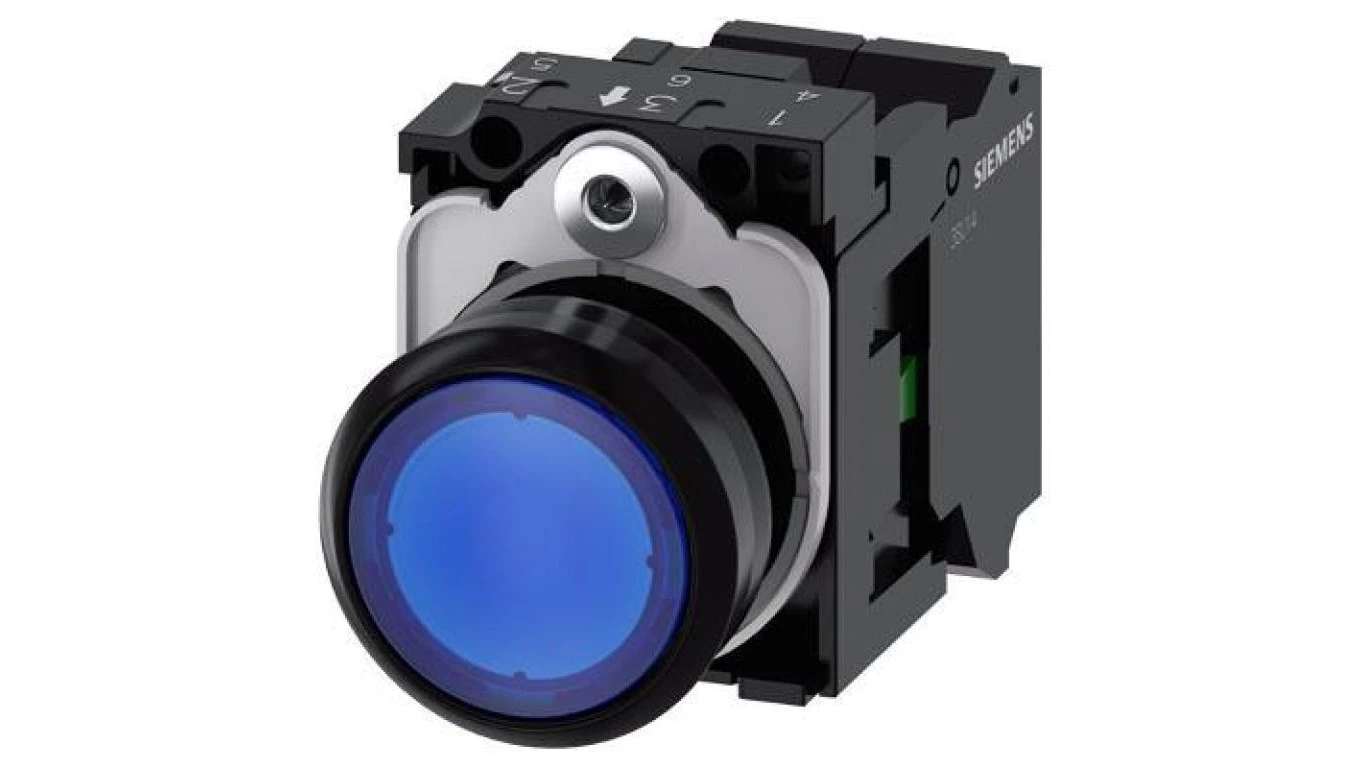 Przycisk okrągły, podświetlany, 22 mm, tworzywo, niebieski, przycisk, płaski, ze stykiem chwilowym, z uchwytem3SU1102-0AB50-3BA0
