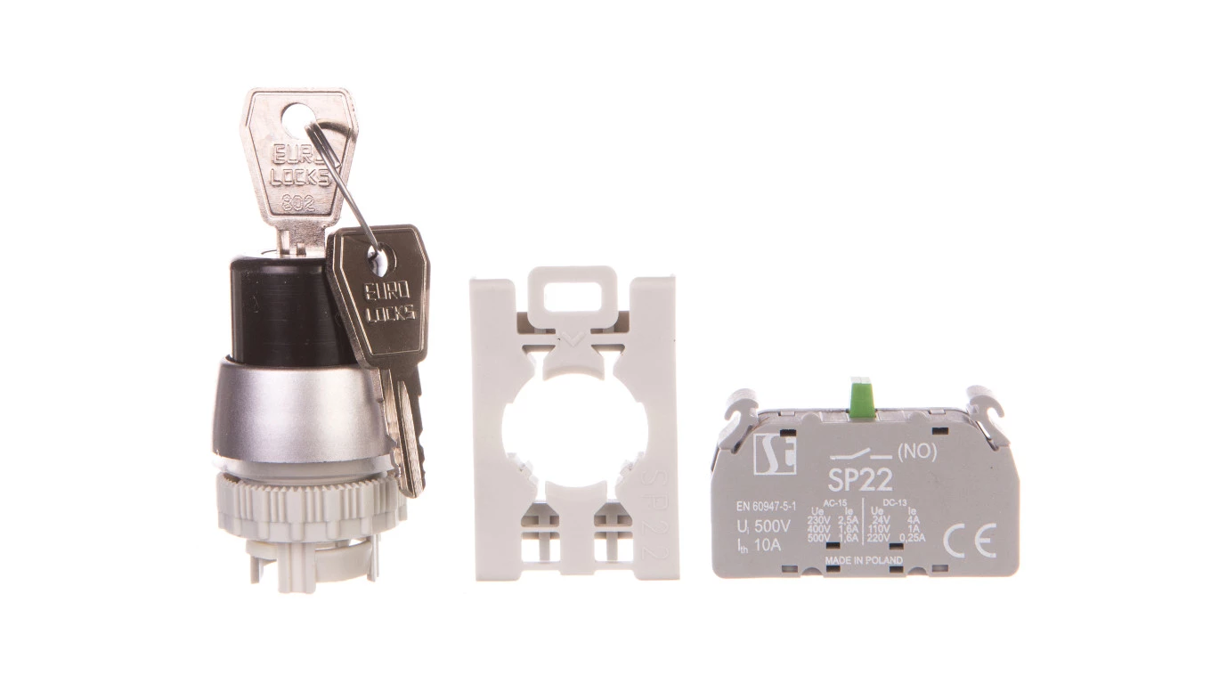 Przycisk pokrętny 2 położeniowy klucz 1Z pierścień niklowany SP22-SAA-10.