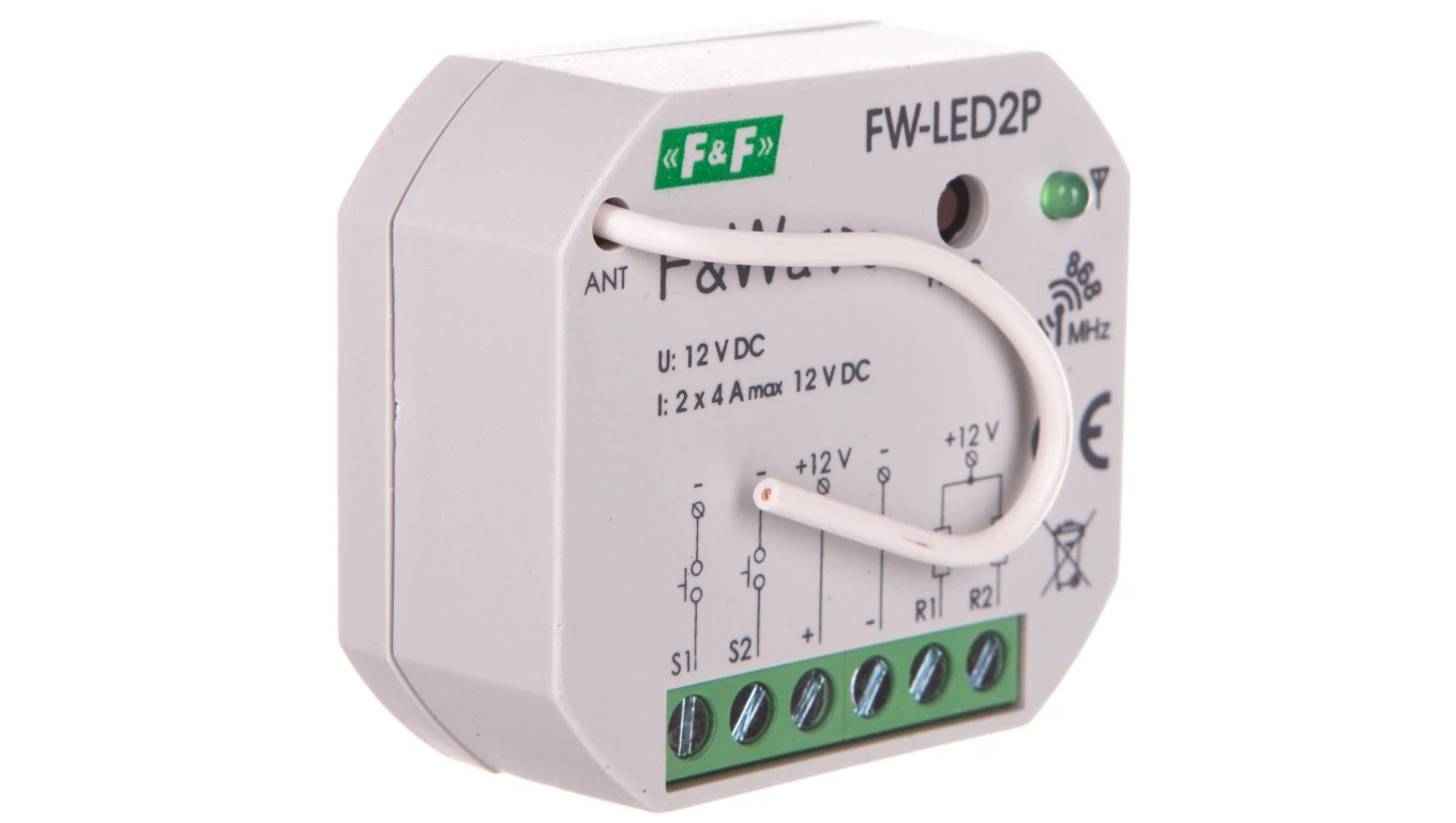 Radiowy dwukanałowy sterownik LED 12V - montaż p/t 10-16V DC FiWave FW-LED2P