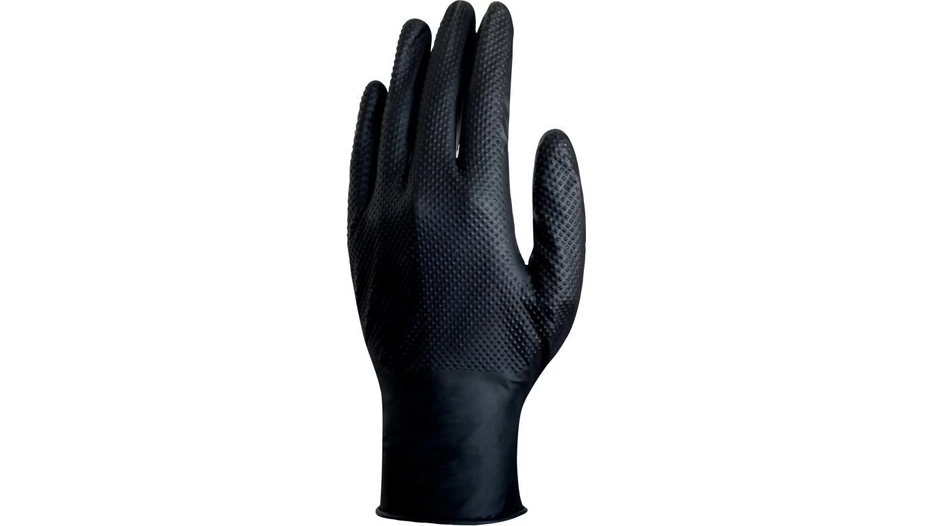 RĘKAWICE JEDNORAZOWE Z NITRYLU, NIEPUDROWANE, NITRYL O CHROPOWATEJ TEKSTURZE, OPAKOWANIE 50, CZARNE, ROZMIAR 6/7, V1600B5006