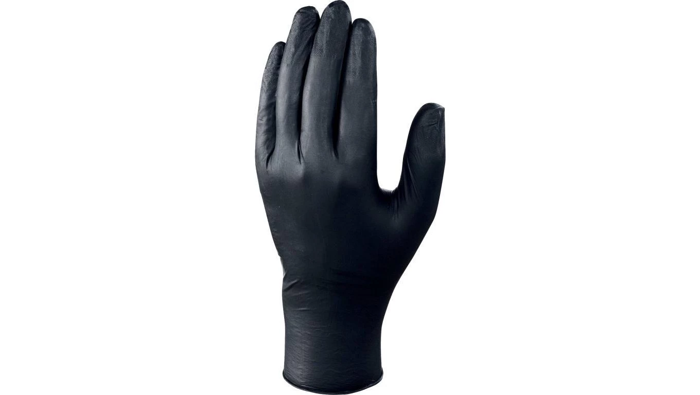 RĘKAWICE JEDNORAZOWE Z NITRYLU, NIEPUDROWANE, OPAKOWANIE 100, CZARNE, ROZMIAR 8/9, V1460B10008
