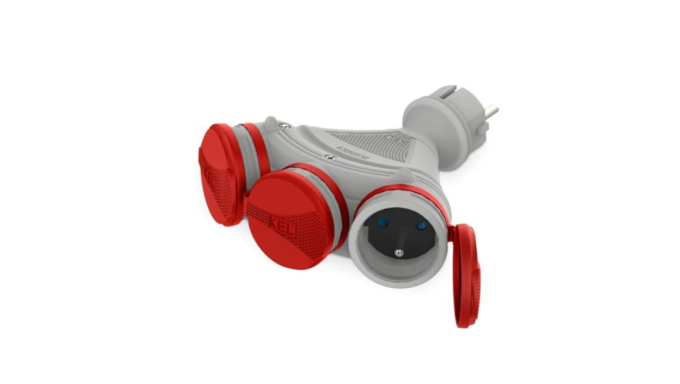 Rozgałęźnik wtyczkowy 3-gniazda z/u 16A 250V IP54 szary/czerwony GN-X3/54 W-01151
