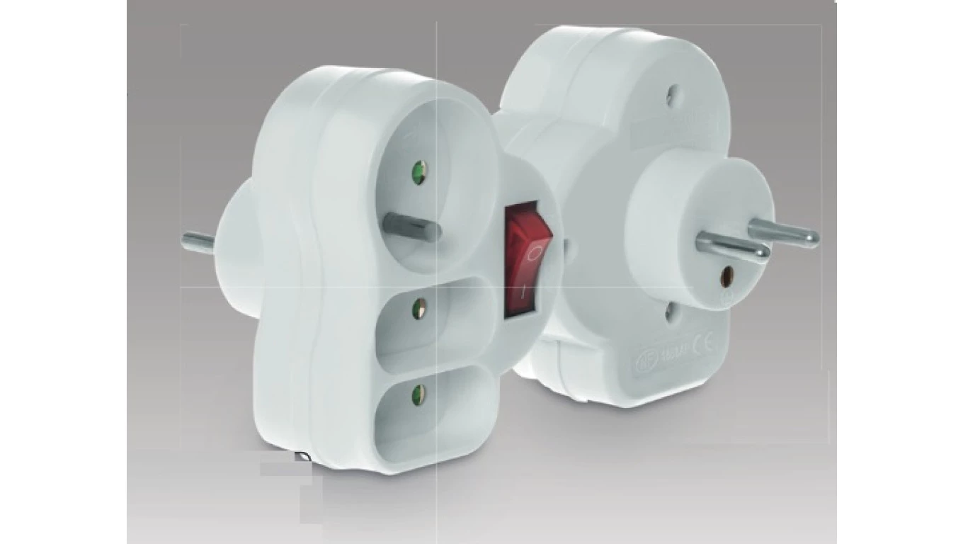 Rozgałęźnik wtyczkowy z wyłącznikiem 1-gniazdo z/u + 2x Euro biały R-12WS