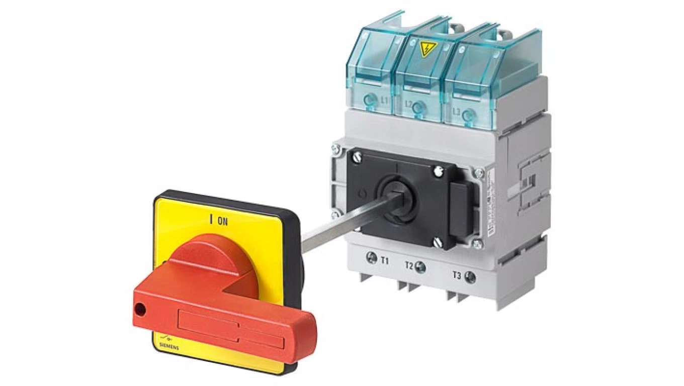 Rozłącznik główny/awaryjny 3P 160A 75kW AC23A 400V montaż na płycie z wałkiem pokrętło piórkowe 4 otwory 3LD2318-0TK13