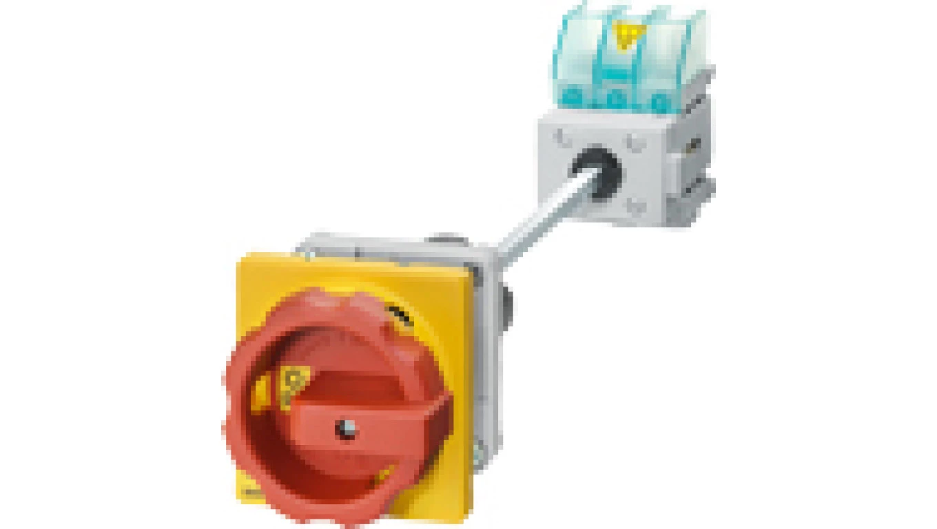 Rozłącznik główny/awaryjny 3P 16A 7.5kW AC23A 400V montaż na płycie z wałkiem pokrętło żółto-czerwone 4 otwory 3LD2013-0TK53