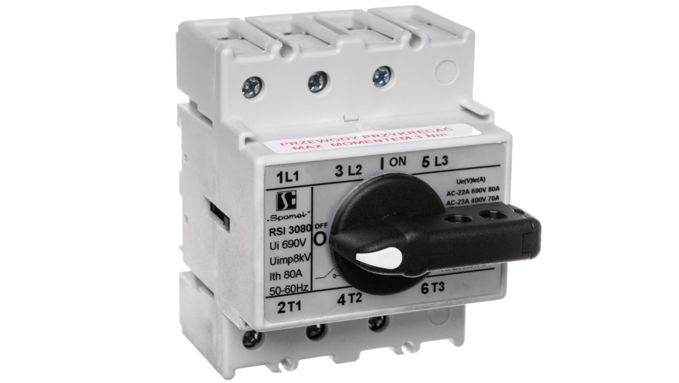 Rozłącznik izolacyjny 3P 80A z pokrętłem na rozłączniku czarnym RSI-3080W02