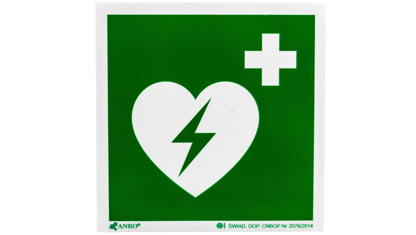 Samoprzylepna tabliczka ostrzegawcza /AUTOMATYCZNY DEFIBRYLATOR 150x150mm/ IE/010/F/FS