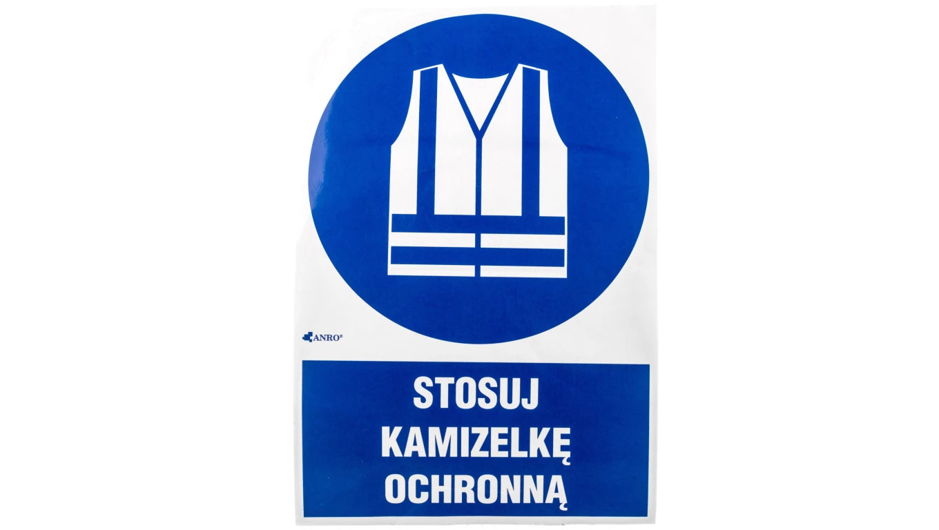 Samoprzylepna tabliczka ostrzegawcza /Stosuj kamizelkę ochronną z podpisem/ IM/015/1/C1/F