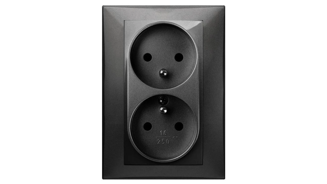 SANTRA gniazdo 2x2P+Z monolit z ramką podtynkowe czarny 4135-09
