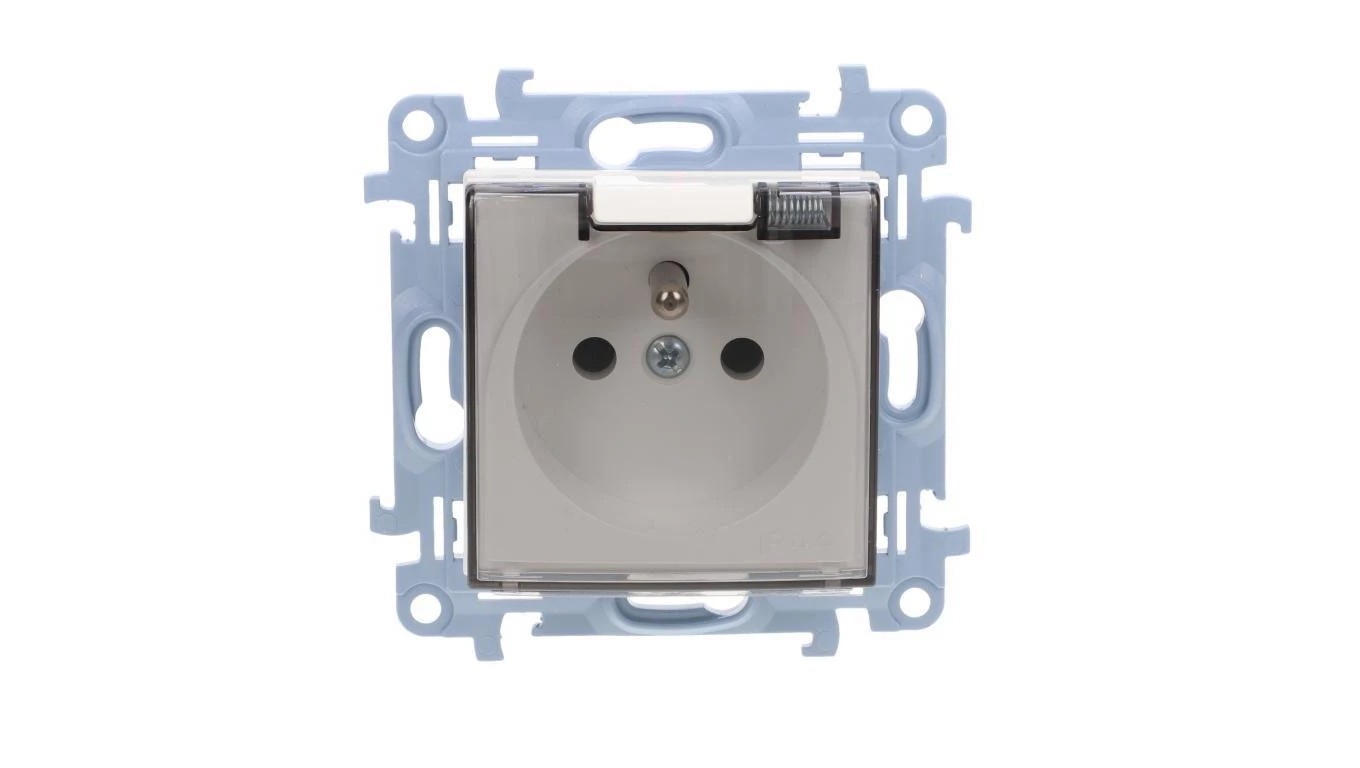 Simon 10 Gniazdo pojedyncze IP44 z uszczelką klapka w kolorze transparentnym biały 16A, szybkozłącza, CGZ1BC.01/11A