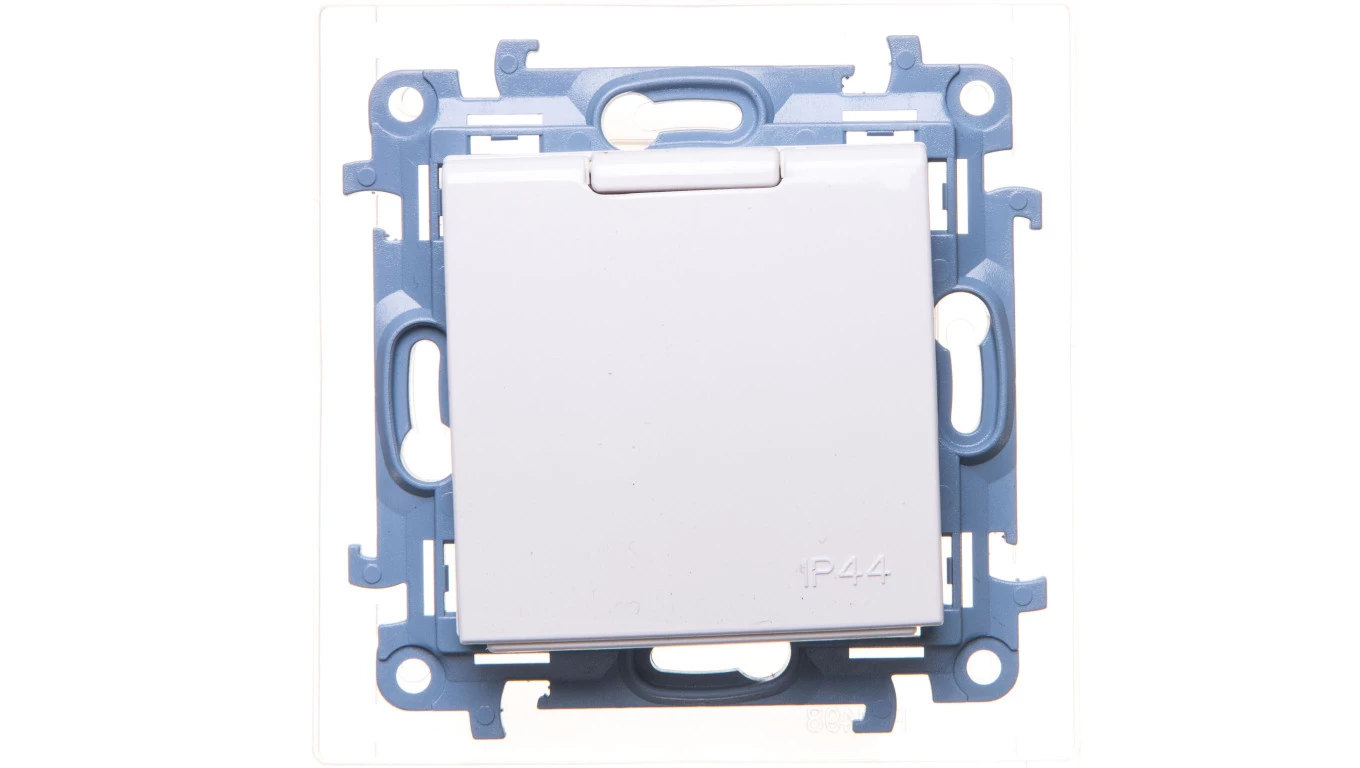 Simon 10 Gniazdo pojedyncze SCHUKO z uszczelką z przesłonami białe 16A 250V IP44 CGSZ1BZ.01/11