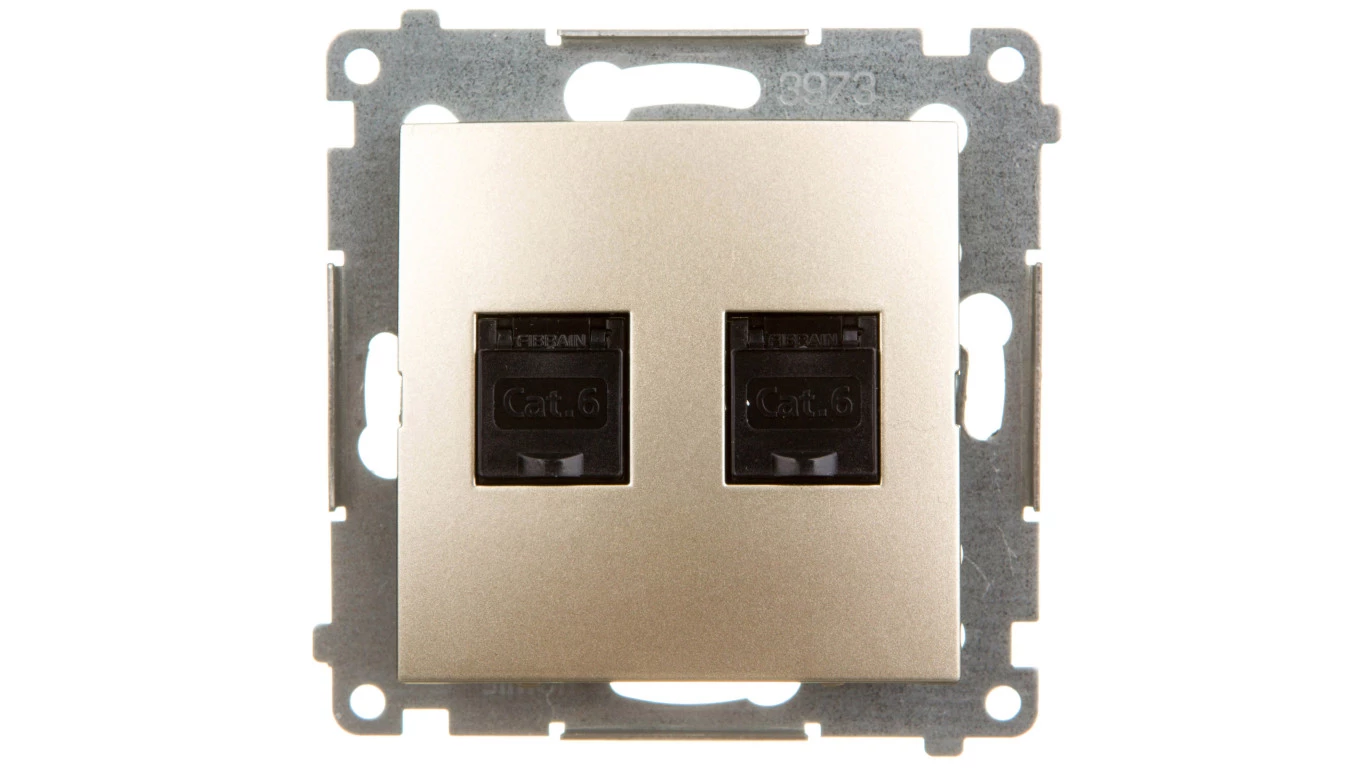 Simon 54 Gniazdo komputerowe podwójne 2xRJ45 kat.6 z przesłoną złoty mat D62.01/44