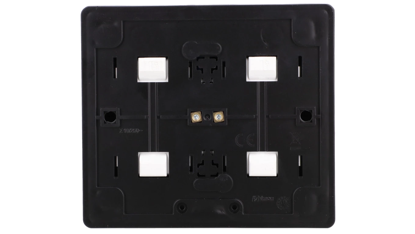 Simon 54 Gniazdo poczwórne Schuko natynkowe z przesłonami torów prąd. wer. skand. 16A 250V zaciski śrubowe czarny mat EGSZ4NZ/49
