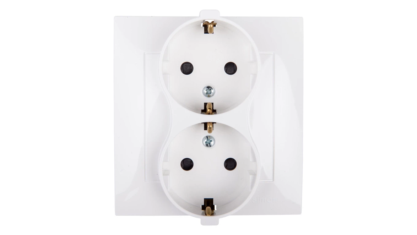 Simon 54 Gniazdo podwójne SCHUKO z/u 16A IP20 z przesłoną torów białe DGSz2Z/11