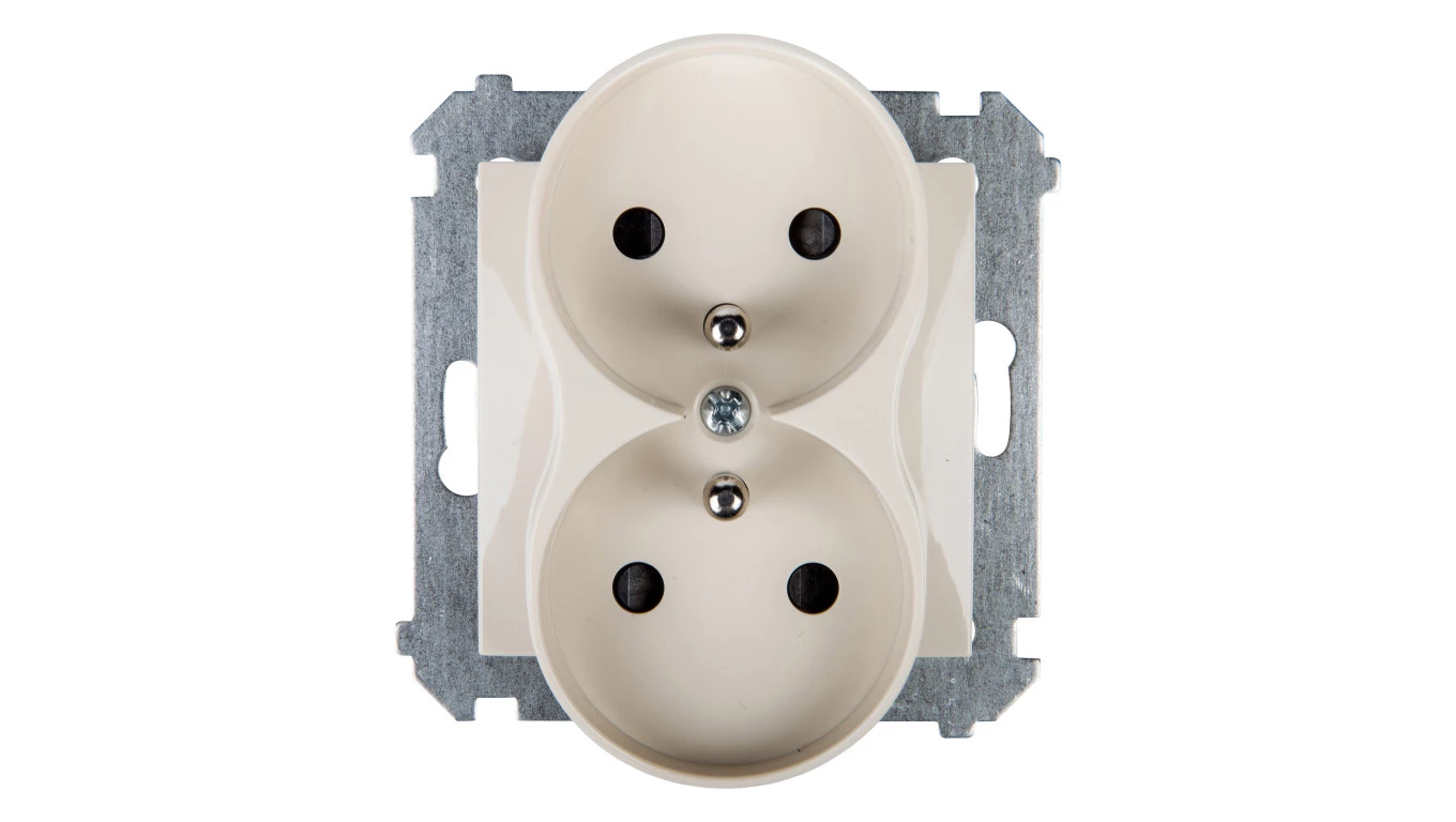 Simon 54 Gniazdo podwójne z/u 16A IP20 z przesłoną torów kremowe DGZ2MZ.01/41