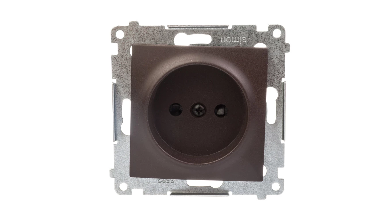 Simon 54 Gniazdo pojedyncze b/u 16A IP20 z przesłoną torów brąz mat DG1Z.01/46
