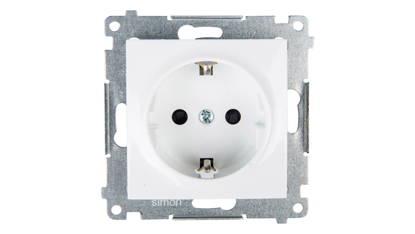 Simon 54 Gniazdo pojedyncze SCHUKO z/u 16A IP20 z przesłoną torów białe DGSz1Z.01/11