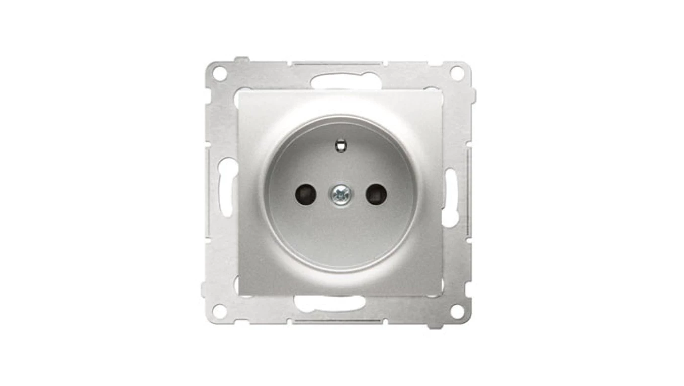 Simon 54 Gniazdo pojedyncze z/u 16A IP20 z przesłoną torów srebrny mat DGZ1Z.01/43