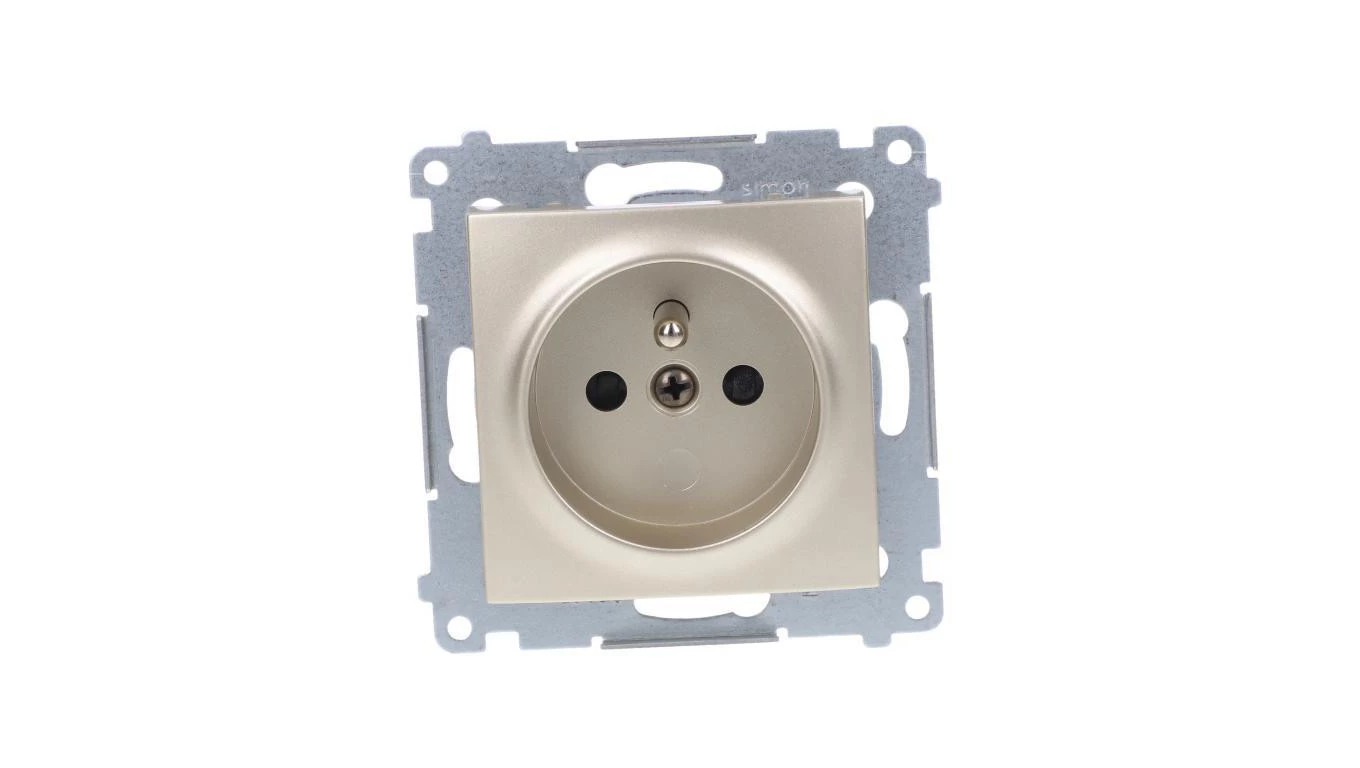 Simon 54 Gniazdo pojedynczne z/u 16A IP20 z przesłoną torów, szybkozłącza, złoty mat DGZ1CZ.01/44