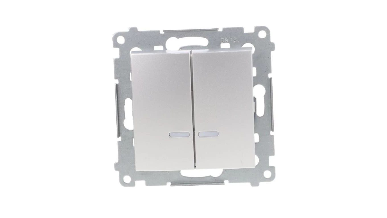 Simon 54 Łącznik bryzgoszczelny świecznikowy IP44 z podświetleniem, szybkozłącza, srebrny mat DW5BL.01/43