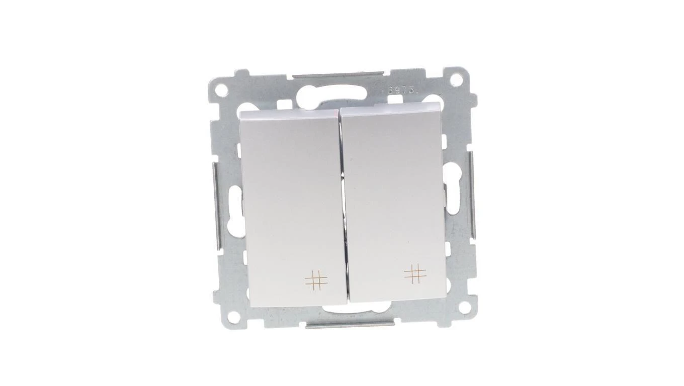 Simon 54 Łącznik krzyżowy podwójny 10A 230V IP20, szybkozłącza, srebrny mat DW7/2.01/43