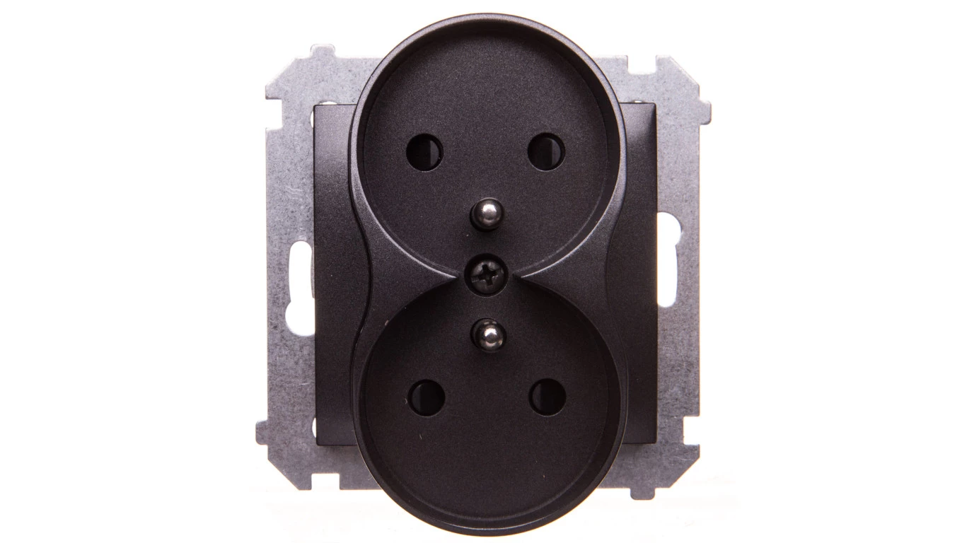 Simon 54 Nature Gniazdo podwójne do ramek z/u 16A IP20 z przesłoną torów podwójne antracyt DGZ2MZN.01/48