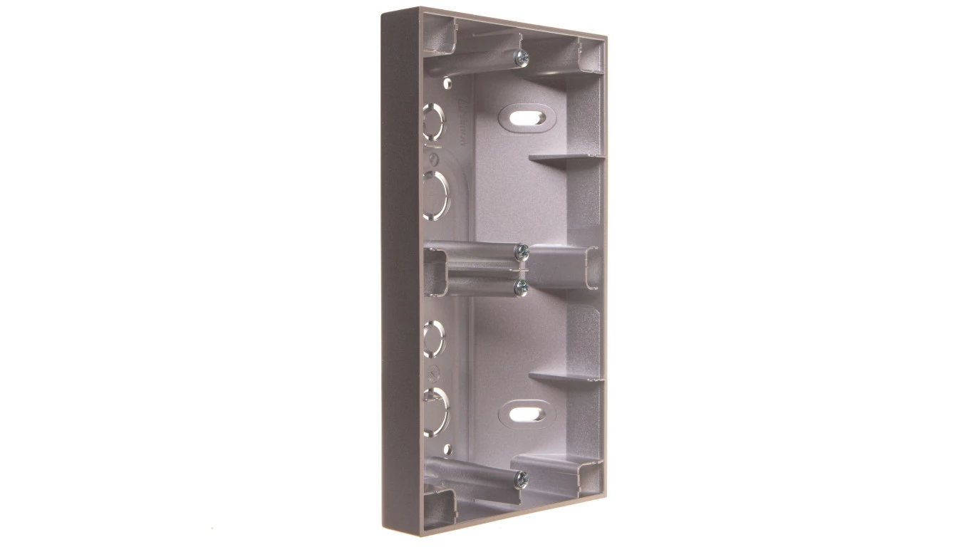 Simon 54 Premium Puszka natynkowa podwójna narożna srebrny matowy DPNR2/43