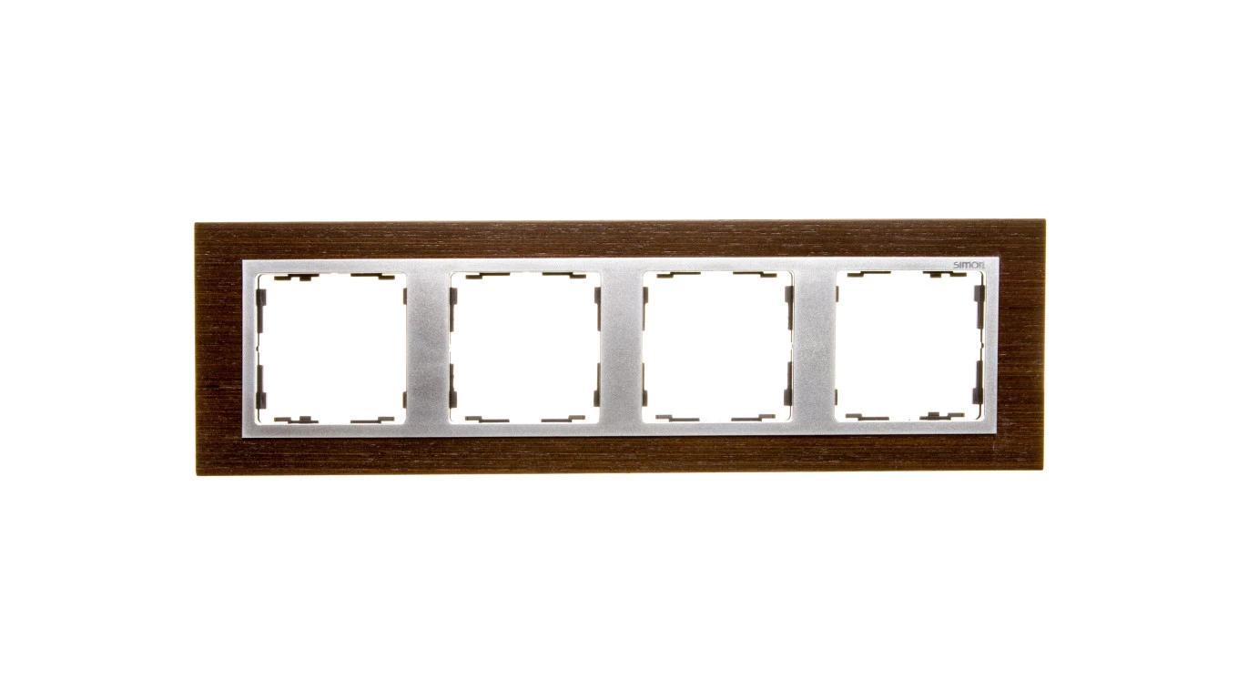 Simon 82 Ramka poczwórna pozioma drewniana wenge/ ramka pośrednia aluminium mat 82947-65