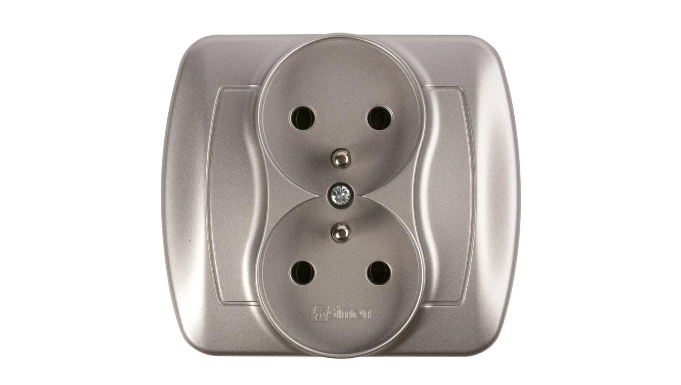 Simon Akord Gniazdo podwójne z/u 16A IP20 aluminium metalizowane AGZ2/26
