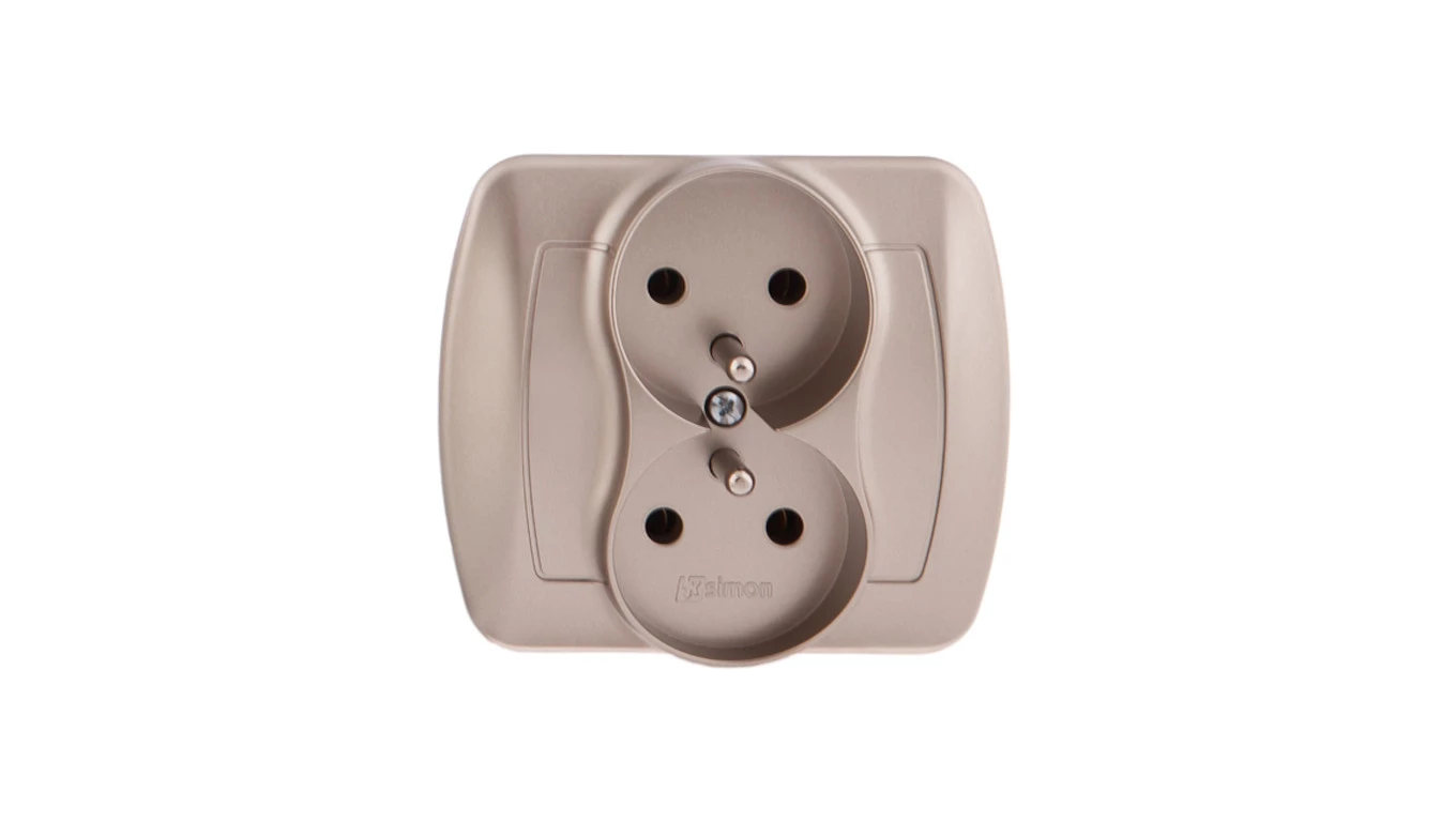 Simon Akord Gniazdo podwójne z/u 16A IP20 satyna metalizowana AGZ2/29