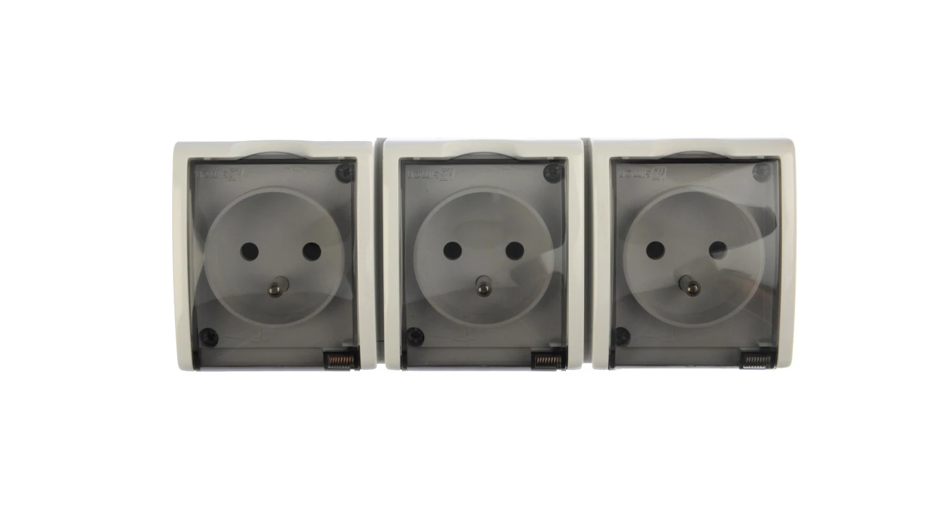 Simon Aquarius Gniazdo hermetyczne potrójne z/u IP54 z klapką dymną białe AQGZ1-3/11a