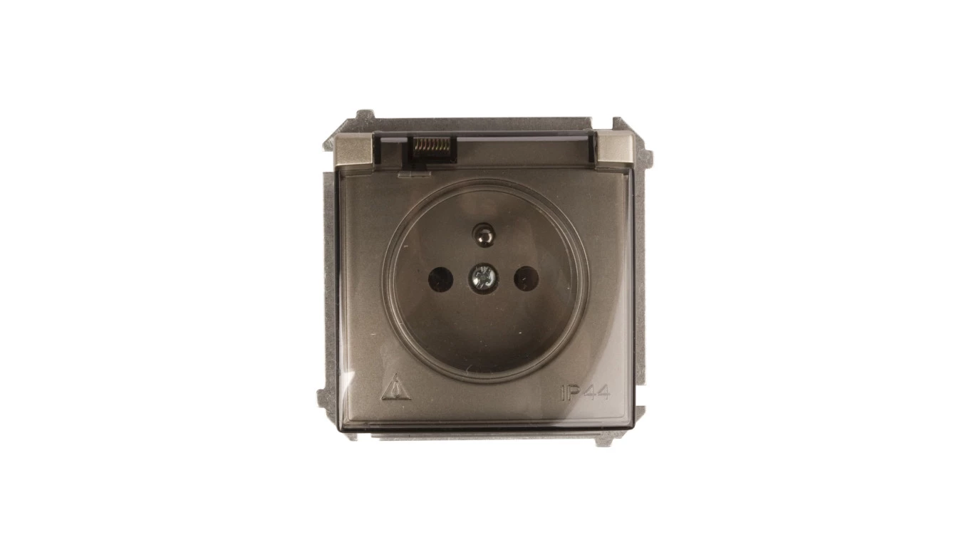 Simon Basic Gniazdo bryzgoszczelne z/u IP44 z klapka dymną satynowe BMGZ1B.01/29a