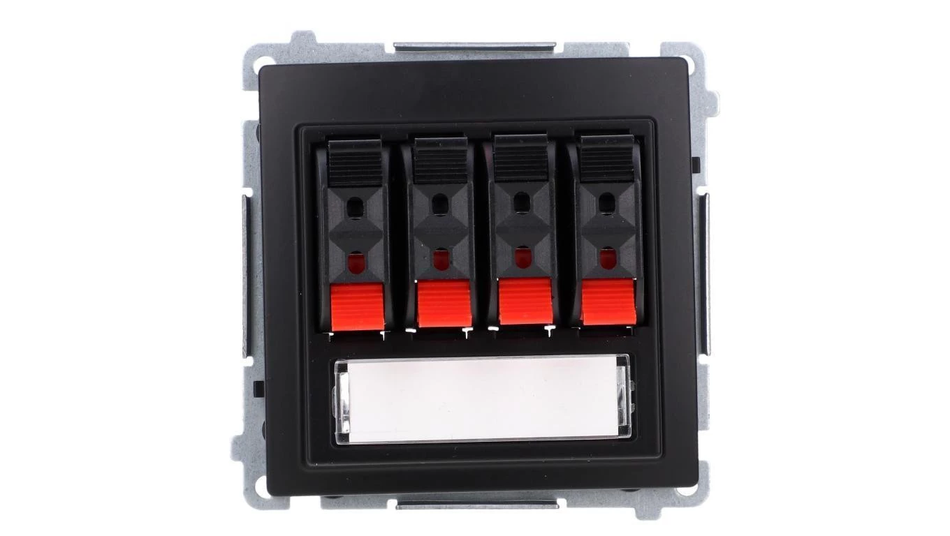 Simon Basic Gniazdo głośnikowe 4-krotne z polem opisowym (moduł). Do podłączenia 4 kolumn głośnikowych czarny BMGL34.01/49